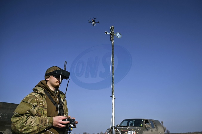 ZAPORIZHZHIA REGION, UKRAINE - MARCH 08, 2024 - A simulated training ground set up by the aerial reconnaissance platoon of the 116th Separate Mechanized Brigade for training in the operation of reusable bomber drones, Zaporizhzhia, south-eastern Ukraine., Credit:Dmytro Smolienko / Avalon
