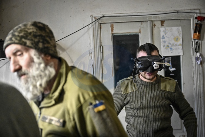 ZAPORIZHZHIA REGION, UKRAINE - MARCH 08, 2024 - A soldier of the aerial reconnaissance platoon of the 116th separate mechanized brigade tests VR goggles to control an FPV drone, Zaporizhzhia, south-eastern Ukraine., Credit:Dmytro Smolienko / Avalon
