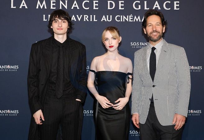 Finn Wolfhard, Mckenna Grace et Paul Rudd - Avant première du film "S.O.S. Fantômes: La Menace de glace" au cinéma Le Grand Rex à Paris le 19 mars 2024. © Coadic Guirec / Bestimage Preview of the film "Ghostbusters: The Ice Menace” at the Le Grand Rex cinema in Paris on March 19, 2024.