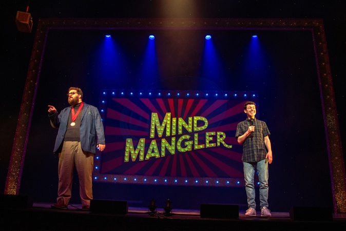 Henry Lewis and Jonathan Sayer during ‘ Mind Mangler: Member Of the Tragic Circle - Theatre Photocall at the The Apollo Theatre in London, England, UK. Tuesday 19th March 2024 -, Credit:JW / Avalon