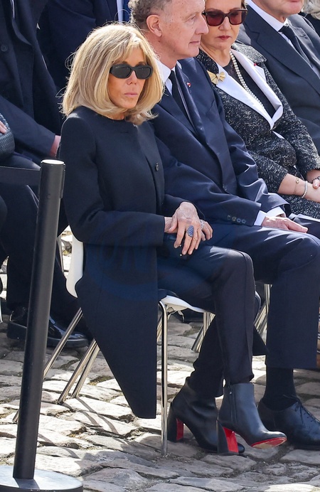 Brigitte Macron, Yves de Gaulle lors de l'hommage national pour l'amiral Philippe de Gaulle dans la cour d'honneur de l'Hôtel national des Invalides à Paris le 20 mars 2024. © Dominique Jacovides / Bestimage National tribute ceremony to late French politician and admiral, Philippe de Gaulle, the son of Charles de Gaulle, at the Hotel des Invalides in Paris on March 20, 2024