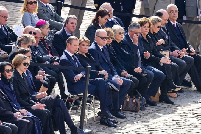 Le grand-duc Henri de Luxembourg et La grande-duchesse Maria Teresa de Luxembourg, le prince Albert II de Monaco lors de l'hommage national pour l'amiral Philippe de Gaulle dans la cour d'honneur de l'Hôtel national des Invalides à Paris le 20 mars 2024. © Dominique Jacovides / Bestimage National tribute ceremony to late French politician and admiral, Philippe de Gaulle, the son of Charles de Gaulle, at the Hotel des Invalides in Paris on March 20, 2024