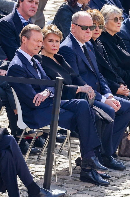 Le grand-duc Henri de Luxembourg et La grande-duchesse Maria Teresa de Luxembourg, le prince Albert II de Monaco lors de l'hommage national pour l'amiral Philippe de Gaulle dans la cour d'honneur de l'Hôtel national des Invalides à Paris le 20 mars 2024. © Dominique Jacovides / Bestimage National tribute ceremony to late French politician and admiral, Philippe de Gaulle, the son of Charles de Gaulle, at the Hotel des Invalides in Paris on March 20, 2024