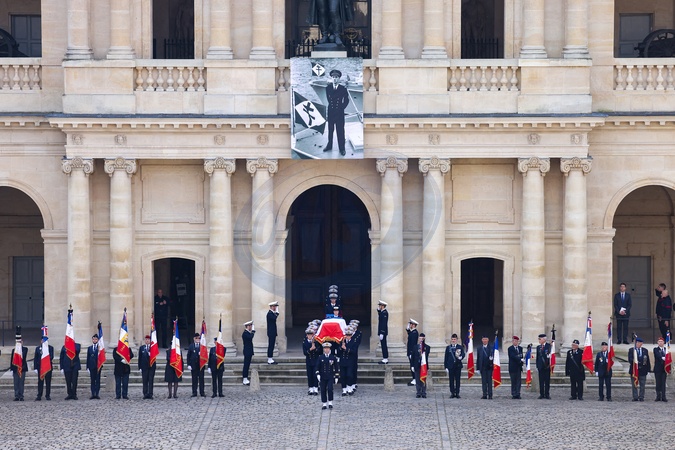 illustration lors de l'hommage national pour l'amiral Philippe de Gaulle dans la cour d'honneur de l'Hôtel national des Invalides à Paris le 20 mars 2024. © Dominique Jacovides / Bestimage National tribute ceremony to late French politician and admiral, Philippe de Gaulle, the son of Charles de Gaulle, at the Hotel des Invalides in Paris on March 20, 2024