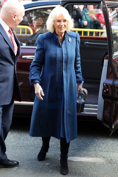 DOUGLAS, ISLE OF MAN - MARCH 20: Queen Camilla arrives at Douglas Borough Council on March 20, 2024 in Douglas, Isle of Man. The Queen will deliver a speech on behalf of His Majesty The King before presenting the Letters Patent conferring City status on the Borough of Douglas., Credit:Chris Jackson / Avalon