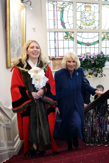 DOUGLAS, ISLE OF MAN - MARCH 20: Natalie Byron-Teare, Mayor of Douglas, walks with Queen Camilla at Douglas Borough Council on March 20, 2024 in Douglas, Isle of Man. The Queen will deliver a speech on behalf of His Majesty The King before presenting the Letters Patent conferring City status on the Borough of Douglas., Credit:Chris Jackson / Avalon