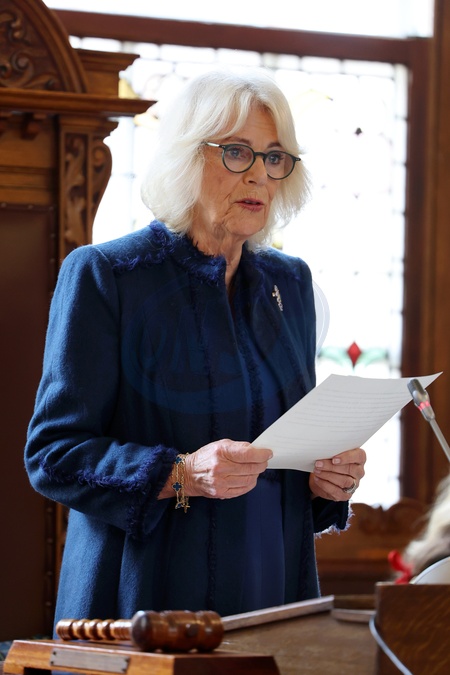 DOUGLAS, ISLE OF MAN - MARCH 20: Queen Camilla delivers a speech on behalf of His Majesty The King at Douglas Borough Council on March 20, 2024 in Douglas, Isle of Man. The Queen will be presenting the Letters Patent conferring City status on the Borough of Douglas., Credit:Chris Jackson / Avalon