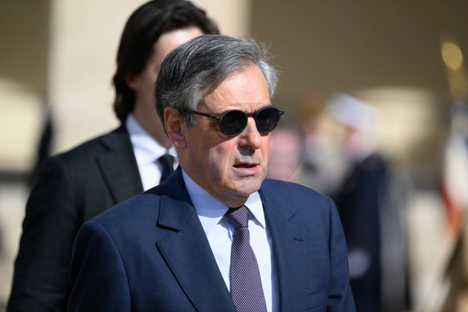 Francois Fillon - Hommage national pour l'amiral Philippe de Gaulle dans la cour d'honneur de l'Hôtel National des Invalides à Paris. Le 20 mars 2024. © Jacques Witt / Pool / Bestimage Members of the French Navy (Marine Nationale) carry the coffin during a "national tribute" ceremony to late French politician and admiral, Philippe de Gaulle, the son of Charles de Gaulle, with his portrait displayed on a facade, at the Hotel des Invalides in Paris on March 20th 2024