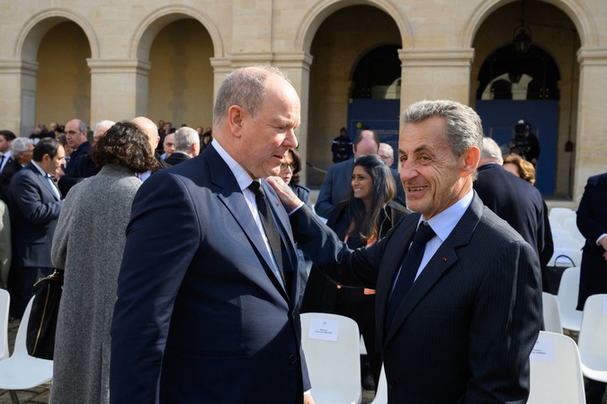 Le prince Albert II de Monaco et Nicolas Sarkozy - Hommage national pour l'amiral Philippe de Gaulle dans la cour d'honneur de l'Hôtel National des Invalides à Paris. Le 20 mars 2024. © Jacques Witt / Pool / Bestimage Members of the French Navy (Marine Nationale) carry the coffin during a "national tribute" ceremony to late French politician and admiral, Philippe de Gaulle, the son of Charles de Gaulle, with his portrait displayed on a facade, at the Hotel des Invalides in Paris on March 20th 2024