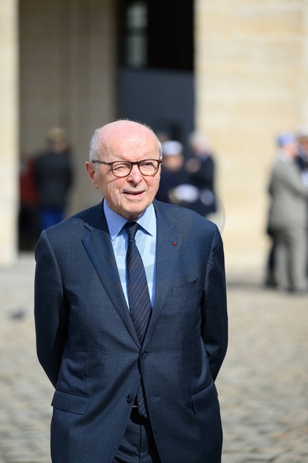 Jacques Toubon - Hommage national pour l'amiral Philippe de Gaulle dans la cour d'honneur de l'Hôtel National des Invalides à Paris. Le 20 mars 2024. © Jacques Witt / Pool / Bestimage Members of the French Navy (Marine Nationale) carry the coffin during a "national tribute" ceremony to late French politician and admiral, Philippe de Gaulle, the son of Charles de Gaulle, with his portrait displayed on a facade, at the Hotel des Invalides in Paris on March 20th 2024