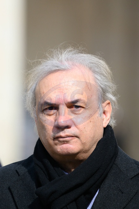 Bruno Roger Petit - Hommage national pour l'amiral Philippe de Gaulle dans la cour d'honneur de l'Hôtel National des Invalides à Paris. Le 20 mars 2024. © Jacques Witt / Pool / Bestimage Members of the French Navy (Marine Nationale) carry the coffin during a "national tribute" ceremony to late French politician and admiral, Philippe de Gaulle, the son of Charles de Gaulle, with his portrait displayed on a facade, at the Hotel des Invalides in Paris on March 20th 2024