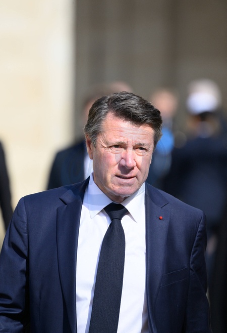 Christian Estrosi - Hommage national pour l'amiral Philippe de Gaulle dans la cour d'honneur de l'Hôtel National des Invalides à Paris. Le 20 mars 2024. © Jacques Witt / Pool / Bestimage Members of the French Navy (Marine Nationale) carry the coffin during a "national tribute" ceremony to late French politician and admiral, Philippe de Gaulle, the son of Charles de Gaulle, with his portrait displayed on a facade, at the Hotel des Invalides in Paris on March 20th 2024