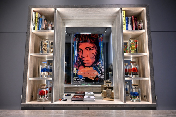 Exclusif - Fred Allard, l'artiste niçois, plasticien néo-pop de renommée internationale, ouvre son propre Flagship store, la "Galerie Fred Allard" au 10 de l'avenue de Verdun à Nice, la plus prestigieuse artère de la ville, aux côtés des enseignes telles que Vuitton, Omega, Cartier, Hermés...Situé entre la place Masséna et la Promenade des Anglais, cet espace autrefois occupé par Air France est dédié à ses créations, des sculptures basées principalement sur la technique de l'inclusion, où il assemble des objets iconiques de la culture populaire, mais aussi du luxe avec des sacs de marques prestigieuses, les transforme, les rehausse de peinture et d'encre avant de les enfermer à jamais dans un bloc de résine parfaitement transparente. Fred Allard fait ainsi référence aux artistes de l'école de Nice, notamment César et ses compressions, Arman pour ses inclusions. Il est un nouvel acteur sur la scène internationale de l'art contemporain. Créateur d'un laboratoire de mode pendant plusieurs années, il garde de ce milieu une empreinte, une culture, un enthousiasme, qu'il utilise comme base de réflexion dans son travail d'artiste. Ses "Shopping bag" marquent sa signature et interpellent par l'identité propre que revêt chaque œuvre, confectionnée par l'artiste : une onde de chic poétique et charismatique impossible à dupliquer. Il enferme montres, bouteilles de parfums, cannettes de soda, écouteurs ou sucettes dans des sculptures en résine de cristal pour les figer. Les objets du quotidien deviennent ainsi œuvres d'art. Les sculptures de l'Azuréen débordent de bonbons, de sodas, de barres chocolatées, mais aussi de sacs, de maquillages ou de parfums de luxe, des sneakers ou des manettes de jeux vidéos, mais pas que... Avec des personnalités telles que le pilote de F1 C.Leclerc, le footballeur NeymarJr, ou bien le champion du monde de moto F.Quartararo, il crée des oeuvres uniques avec leurs objets fétiches et personnels sous l'appellation "Vide ton Sac". Pour exemple, C.Leclerc a sélectionné deux objets de ses parents, le premier est un stylo avec lequel il a signé son contrat chez Ferrari, un stylo qui appartenait à son père et la paire de ciseaux qu'utilise sa maman pour son métier de coiffeuse. Exposé dans la plupart des grandes galeries dans le monde, comme à New York, Las Vegas, Londres, Genéve, Gstaad, Venise ou Dubaï, il a aussi un espace d'exposition à Saint Tropez, et collabore avec Eden Gallery à Miami. Le prix de ses oeuvres peut dépasser les 100.000 Euros pour les plus imposantes. Le 13 mars 2024. © Bruno Bebert / Bestimage No web pour la Belgique et la Suisse Exclusive - For Germany, call for price - Fred Allard, the Nice-born artist and internationally renowned neo-pop artist, opened his own flagship store, the "Galerie Fred Allard" on Avenue de Verdun, the most luxurious in Nice, where you can find brands such as Vuitton, Omega, Cartier, Hermés... Located between Place Masséna and the Promenade des Anglais, this space is dedicated to his creations, sculptures based mainly on the technique of inclusion, where he assembles iconic objects of culture popular, but also luxury with bags from prestigious brands, transforms them, enhances them with paint and ink before enclosing them forever in a block of perfectly transparent resin. Fred Allard thus refers to the artists of the Nice school, notably César and his compressions, Arman for his inclusions. He is a new actor on the international contemporary art scene. Creator of a fashion laboratory for several years, he keeps an imprint, a culture, an enthusiasm from this environment, which he uses as a basis for reflection in his work as an artist. His "Shopping bags” mark his signature and appeal with the specific identity that each work takes on, created by the artist: a wave of poetic and charismatic chic that is impossible to duplicate. He encloses watches, perfume bottles, soda cans, headphones or lollipops in crystal resin sculptures to freeze them. Everyday objects thus become works of art. The sculptures of the Riviera are overflowing with candies, sodas, chocolate bars, but also bags, makeup or luxury perfumes, sneakers or video game controllers, but not only... With personalities such as the F1 driver C.Leclerc, the footballer N.Jr, or the motorcycle world champion F.Quartararo, he creates unique works with their favorite and personal objects under the name "Empty your Bag". For example, C.Leclerc selected two objects from his parents, the first is a pen with which he signed his contract at Ferrari, a pen which belonged to his father and the pair of scissors that his mother uses for her profession. hairdresser. Exhibited in most major galleries around the world, such as New York, Las Vegas, London, Geneva, Gstaad, Venice and Dubai, he also has an exhibition space in Saint Tropez, and collaborates with Eden Gallery in Miami. The price of his works can exceed 100,000 Euros for the most imposing. March 13th, 2024.