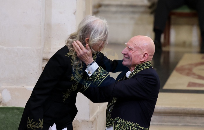 Annie Leibovitz et Sebastiao Salgado - Installation d'A.Leibovitz, en tant que membre associé étranger, à l'Académie des Beaux-Arts de Paris. Le 20 mars 2024 © Dominique Jacovides / Bestimage Intake ceremony of A.Leibovitz into the Académie des Beaux-Arts on March 20, 2024 in Paris, France