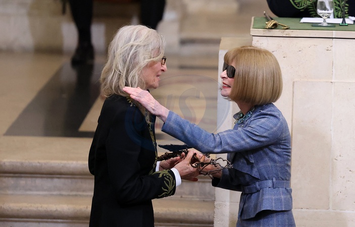Annie Leibovitz et Anna Wintour - Installation d'A.Leibovitz, en tant que membre associé étranger, à l'Académie des Beaux-Arts de Paris. Le 20 mars 2024 © Dominique Jacovides / Bestimage Intake ceremony of A.Leibovitz into the Académie des Beaux-Arts on March 20, 2024 in Paris, France