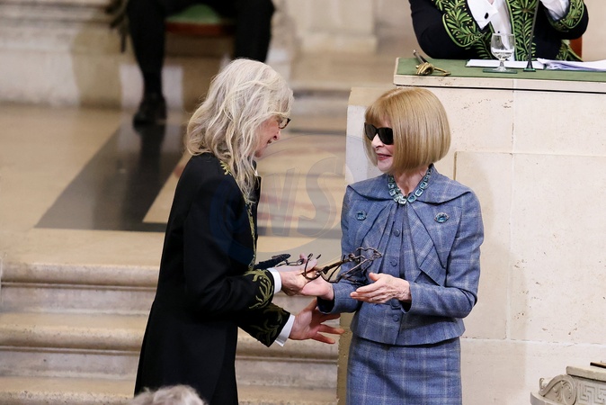 Annie Leibovitz et Anna Wintour - Installation d'A.Leibovitz, en tant que membre associé étranger, à l'Académie des Beaux-Arts de Paris. Le 20 mars 2024 © Dominique Jacovides / Bestimage Intake ceremony of A.Leibovitz into the Académie des Beaux-Arts on March 20, 2024 in Paris, France