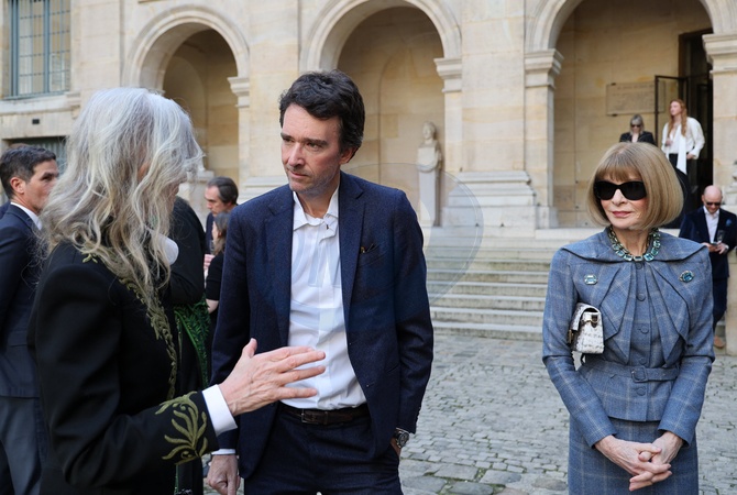 Antoine Arnault, Annie Leibovitz, Anna Wintour - Installation d'A.Leibovitz, en tant que membre associé étranger, à l'Académie des Beaux-Arts de Paris. Le 20 mars 2024 © Dominique Jacovides / Bestimage Intake ceremony of A.Leibovitz into the Académie des Beaux-Arts on March 20, 2024 in Paris, France