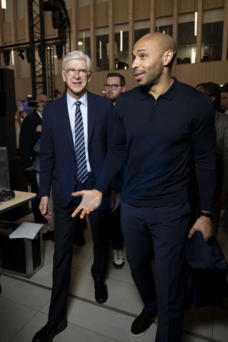 Arsène Wenger et Thierry Henry - Tirage final du tournoi olympique de football au siège de Paris 2014 le 20 mars 2024 à Saint-Denis le 20 mars 2024. © Pierre Perusseau/Bestimage Final draw for the Olympic football tournament at the Paris 2014 headquarters on March 20, 2024 in Saint-Denis