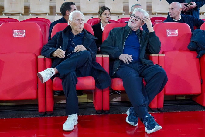 Książę Monako Albert II i Giorgio Armani na zwycięstwie drużyny koszykówki EA7 Emporio Armani Milan (Olimpia Milan) przeciwko Moncao (98–80) w Eurolidze