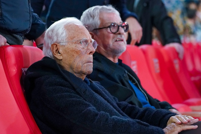 Giorgio Armani - Pantaleo Dell'Orco (président de Milan) - Victoire de l'équipe de basket EA7 Emporio Armani Milan (Olimpia Milan) face à Moncao (98 - 80) en Euroligue, le 20 mars 2024. © Norbert Scanella / Panoramic / Bestimage Victory for the EA7 Emporio Armani Milan basketball team (Olimpia Milan) against Moncao (98 - 80) in the Euroleague, March 20, 2024.