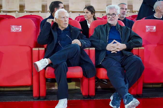 Książę Monako Albert II i Giorgio Armani na zwycięstwie drużyny koszykówki EA7 Emporio Armani Milan (Olimpia Milan) przeciwko Moncao (98–80) w Eurolidze