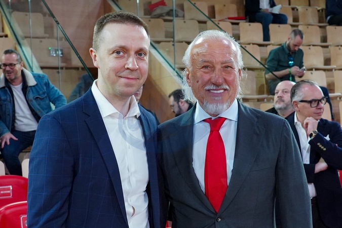 Paulius Motiejunas (CIO de l'Euroleague) - Aleksej Fedoricsev (Président de l'AS Monaco Basket) - Victoire de l'équipe de basket EA7 Emporio Armani Milan (Olimpia Milan) face à Moncao (98 - 80) en Euroligue, le 20 mars 2024. © Norbert Scanella / Panoramic / Bestimage Victory for the EA7 Emporio Armani Milan basketball team (Olimpia Milan) against Moncao (98 - 80) in the Euroleague, March 20, 2024.