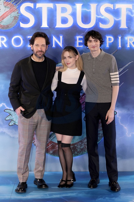 Paul Rudd, Mckenna Grace and Finn Wolfhard at Ghostbusters: Frozen Empire movie photocall London, UK, on 21st march, 2024, Credit:James Shaw / Avalon