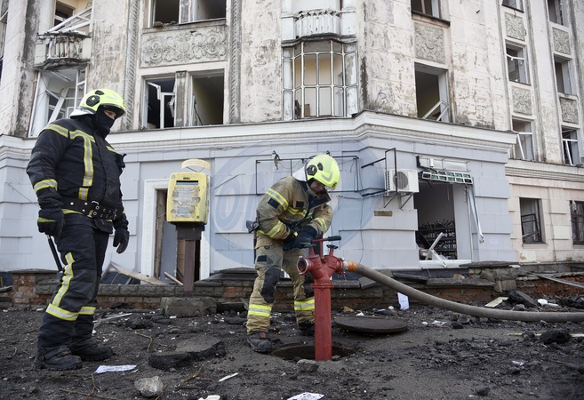 KYIV, UKRAINE - MARCH 21, 2024 - Firefighters eliminate the consequences of Russian shelling in Shevchenkivskyi district of Kyiv, capital of Ukraine., Credit:Ruslan Kaniuka / Avalon