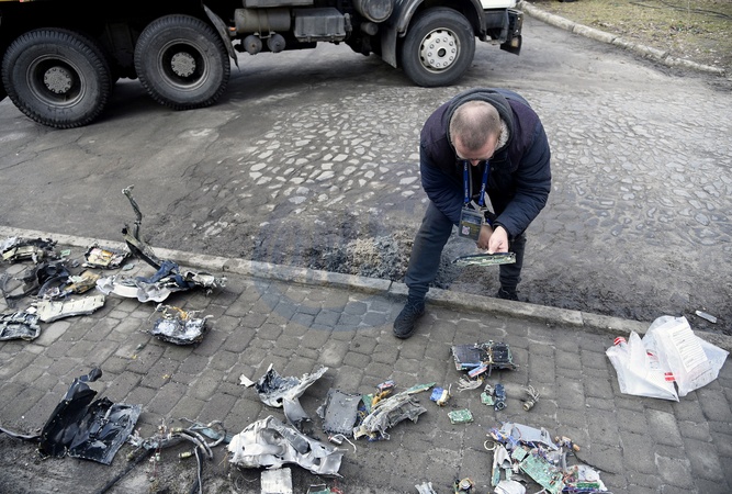 KYIV, UKRAINE - MARCH 21, 2024 - Fragments of a downed Russian shell are seen after a morning attack on Shevchenkivskyi district of Kyiv, capital of Ukraine., Credit:Ruslan Kaniuka / Avalon