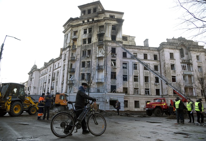 KYIV, UKRAINE - MARCH 21, 2024 - A residential building damaged by a Russian missile strike on Shevchenkivskyi district of Kyiv, capital of Ukraine., Credit:Ruslan Kaniuka / Avalon