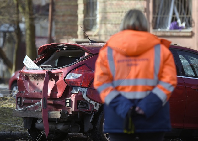 KYIV, UKRAINE - MARCH 21, 2024 - A car damaged as a resukt of a Russian shelling in Shevchenkivskyi district of Kyiv, capital of Ukraine., Credit:Ruslan Kaniuka / Avalon