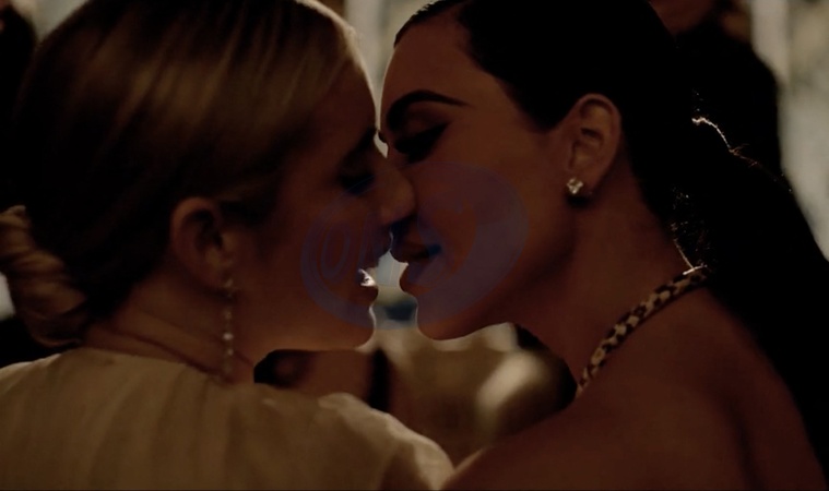 Pictures must credit: FX /Hulu Reality star Kim Kardashianpuckers up for a girl on girl kiss — in a clip from a forthcoming TV drama. Kim, 43, gets up close and personal with co-star Emma Roberts, 33, in a trailer for American Horror Story: Delicate Part Two. The twelfth season of the anthology series American Horror Story, subtitled Delicate, is based on a book called Delicate Condition by author Danielle Valentine. The trailer opens with Emma's character sitting down for a meal with Kim at a swanky restaurant. She stuns Kim by chomping down and eating a bone. Later the two are side by side in an audience all dressed to the nines. Emma confesses to Kim she will do anything to make it, which causes Kim lo lean in as the girls pucker up for a smooch. In an another scene she accuses Kim's character of being "a monster.” The reality star replies:” Oh no babe, I am so much worse.” Kim is then shown in a a Maleficent style outfit complete with black horns Delicate Part Two is due to debut on TV channel FX on April 3. Picture supplied by JLPPA