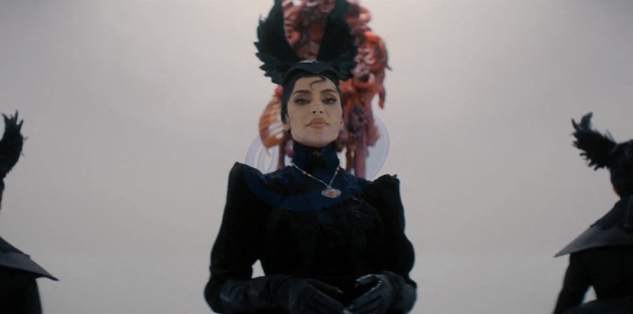 Pictures must credit: FX /Hulu Reality star Kim Kardashianpuckers up for a girl on girl kiss — in a clip from a forthcoming TV drama. Kim, 43, gets up close and personal with co-star Emma Roberts, 33, in a trailer for American Horror Story: Delicate Part Two. The twelfth season of the anthology series American Horror Story, subtitled Delicate, is based on a book called Delicate Condition by author Danielle Valentine. The trailer opens with Emma's character sitting down for a meal with Kim at a swanky restaurant. She stuns Kim by chomping down and eating a bone. Later the two are side by side in an audience all dressed to the nines. Emma confesses to Kim she will do anything to make it, which causes Kim lo lean in as the girls pucker up for a smooch. In an another scene she accuses Kim's character of being "a monster.” The reality star replies:” Oh no babe, I am so much worse.” Kim is then shown in a a Maleficent style outfit complete with black horns Delicate Part Two is due to debut on TV channel FX on April 3. Picture supplied by JLPPA