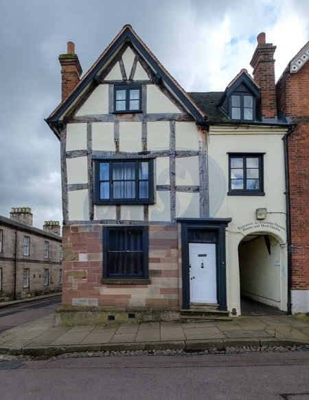 Half timbered house in the Close opposite the Cathedral, leading to Erasmus Darwin's house and garden. Lichfield. Staffordshire. United Kingdom. 17 March 2024, Credit:Mark Fairhurst / Avalon