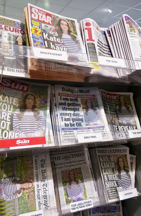 This mornings daily papers with all headlines about Catherine Princess of Wales announcement yesterday that she is undergoing cancer treatment., Credit:Geoffrey Swaine / Avalon