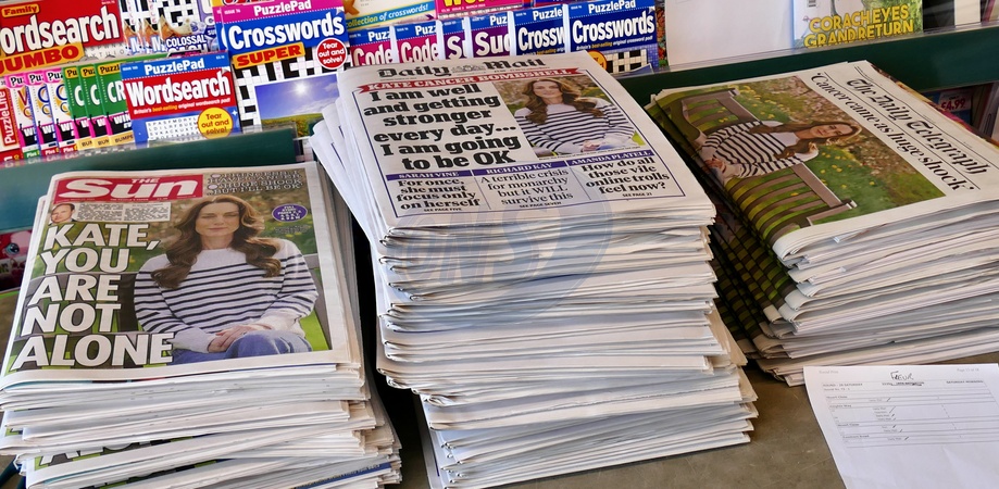 This mornings daily papers with all headlines about Catherine Princess of Wales announcement yesterday that she is undergoing cancer treatment., Credit:Geoffrey Swaine / Avalon
