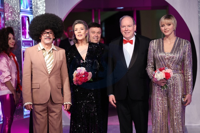 MONACO, LE 23 MARS 2024 BAL DE LA ROSE MONACO «DISCO» ARRIVEE DE LL.AA.SS LE COUPLE PRINCIER, S.A.R LA PRINCESSE DE HANOVRE, CHRISTIAN LOUBOUTIN ©JC VINAJ NO TABLOID