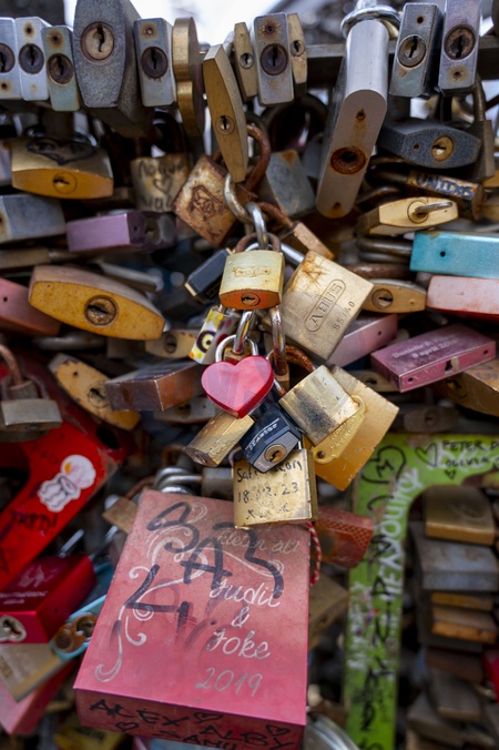 Love padlocks on bridge, Budapest in Budapest, Hungary, Credit:celebrityphotos uk / Avalon