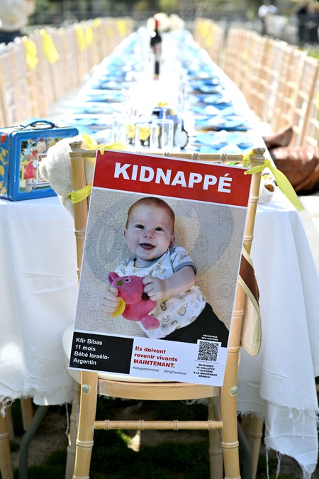 W Nicei ustawiono pusty stół, aby złożyć hołd zakładnikom „nadal przetrzymywanym w Gazie” z okazji żydowskiego święta Purim