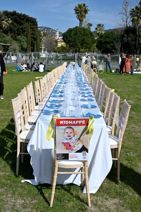 W Nicei ustawiono pusty stół, aby złożyć hołd zakładnikom „nadal przetrzymywanym w Gazie” z okazji żydowskiego święta Purim