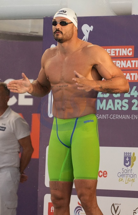 Florent Manaudou lors de la compétition de natation "Giant Open 2024" au Dôme à Saint-Germain-en-Laye
