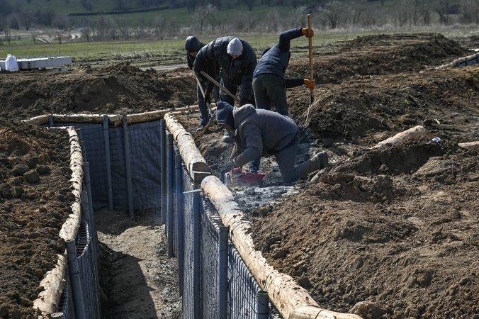 ZAPORIZHZHIA REGION, UKRAINE - MARCH 24, 2024 - Construction of fortifications proceeds apace: contractors, in cooperation with the military, build state-of-the-art shelters for personnel that will protect them from artillery fire and even FPV drones, Zaporizhzhia, south-eastern Ukraine., Credit:Dmytro Smolienko / Avalon