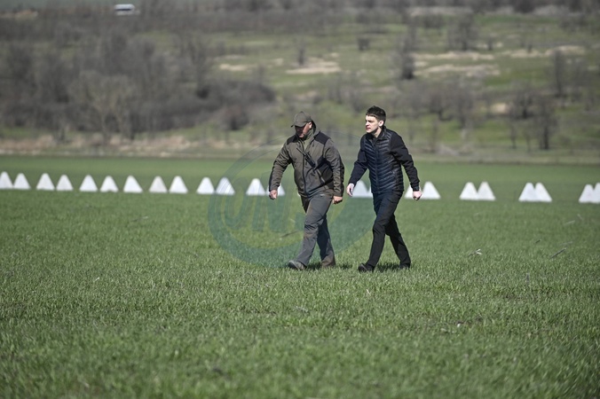 ZAPORIZHZHIA REGION, UKRAINE - MARCH 24, 2024 - Head of Zaporizhzhia Military Regional Administration Ivan Fedorov (R) inspects the progress of fortification construction in the Zaporizhzhia sector during an on-site meeting, Zaporizhzhia, south-eastern Ukraine., Credit:Dmytro Smolienko / Avalon