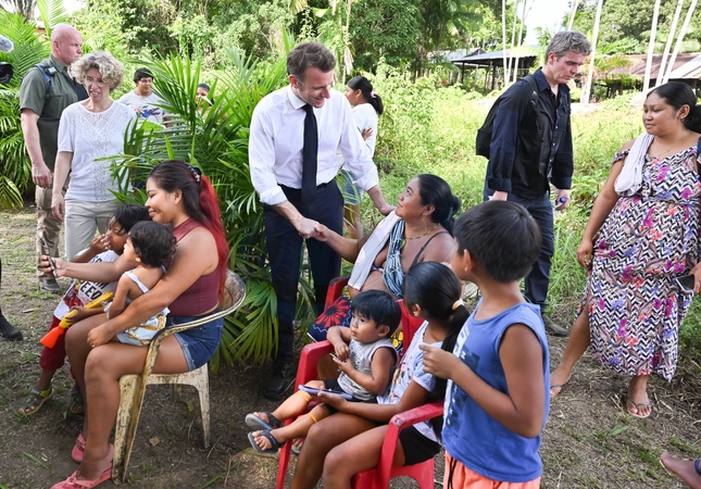 Le président Emmanuel Macron et sa délégation, en déplacement en Guyane, rencontrent les habitants de Camopi avec le 3ème REI (régiment étranger d'infanterie)