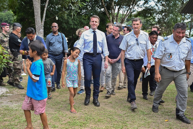 Prezydent Emmanuel Macron spotyka się z mieszkańcami Gujany i z 3. REI (zagranicznym pułkiem piechoty