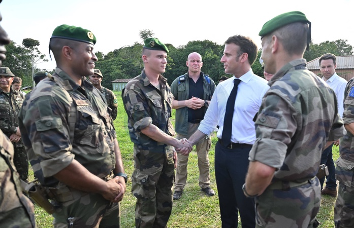Prezydent Emmanuel Macron spotyka się z mieszkańcami Gujany i z 3. REI (zagranicznym pułkiem piechoty