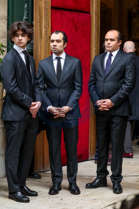Guest, Jihed Guasmi-Mitterrand et Saïd Kasmi-Mittterrand (fils du défunt) - Obsèques de l'ancien ministre de la Culture Frédéric Mitterrand en l'Église Saint-Thomas d'Aquin à Paris. Le 26 mars 2024 © Moreau-Jacovides / Bestimage Funerals of the former Minister of Culture Frédéric Mitterrand in Paris. On March 26th 2024