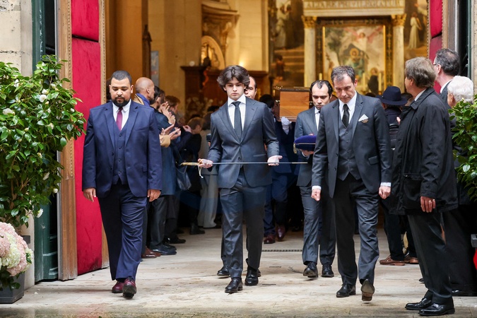 Wyjścia z pogrzebu byłego Ministra Kultury Frédérica Mitterranda w kościele Saint-Thomas d'Aquin w Paryżu