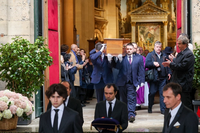 Wyjścia z pogrzebu byłego Ministra Kultury Frédérica Mitterranda w kościele Saint-Thomas d'Aquin w Paryżu