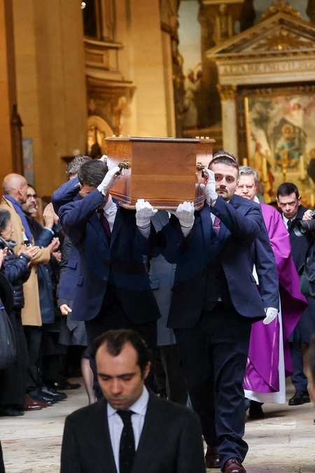 Wyjścia z pogrzebu byłego Ministra Kultury Frédérica Mitterranda w kościele Saint-Thomas d'Aquin w Paryżu